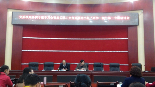 下午,学院党委召了《关于新形势下党内政治生活的若干准则》、《中国共产党党内监督条例》专题学习会暨机关学工党支部党群党小组“两学一做”第三专题研讨会。在校党委委员、纪委委员及党群部门全体党员、干部参加了学习研讨,会议由学院党委书记管永林主持。