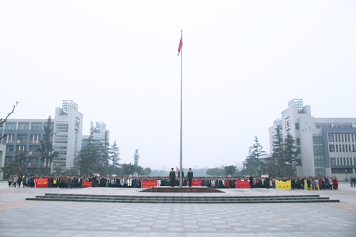 ,新学期行课第一天,由校团委组织的新学期首次升旗仪式在厚德广场举行。学校副院长王开淮、校团委及各系党、团总支负责人出席了此次活动,我校大一、大二师生近5000人以饱满的精神状态参加了此次升旗仪式。