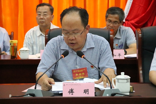 预备会上,四川省教育厅总督学傅明作了讲话。他代表省委教育工委和省教育厅党组向大会的召开表示热烈祝贺,向全体党员和师生员工致以崇高的敬意和诚挚的问候。他指出,四川工商职院第三次党代会,是在深入学习领会和全面贯彻落实党的十九大、习近平新时代中国特色社会主义思想“四川篇”和四川省第十一次党代会、省委十一届二次全会精神,积极顺应高职教育改革发展潮流、深入推进学校内涵式发展、积极创建优质高职院校和高水平职业院校的关键阶段召开的一次十分重要的会议,是学校政治生活和发展进程中的一件大事,在学校发展历史上具有极其重要的意义。希望各位代表认真履行神圣职责,把这次大会开成统一思想、振奋精神、凝聚发展、谋划未来的大会。