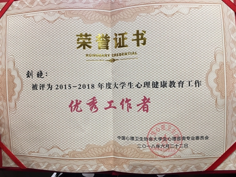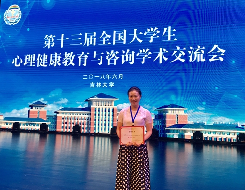本次大会的主题是“新时代中国特色大学生心理健康教育”,会议号召大学生心理健康教育既要顺应国际化发展趋势,把握国际主流动态,借鉴先进教育理念,汲取优秀成果,遵循国际化发展模式。同时,又要注重与中国文化对接,突出价值引领,继承并弘扬我国传统文化精髓,将社会主义核心价值观融入心理健康主渠道教育中。6月22日下午,大会对大学生心理健康教育工作先进集体和个人进行了表彰,我校心理健康教育中心的刘晓老师荣获“2015-2018年度大学生心理健康教育工作优秀工作者”称号。