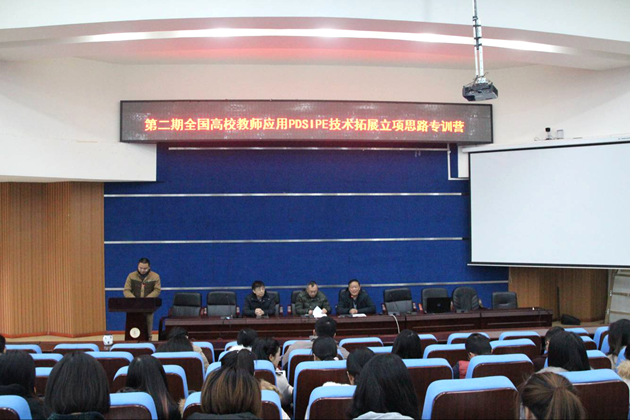 仪式结束后,12月15日-16日期间,由我校中科创新创业学院承办的“第二期全国高校教师应用PDSIPE技术拓展立项思路专训班”在我校学术报告厅开营。我校60名专任教师、辅导员及部分创客协会的学生代表参加了本次培训,由学生工作处副处长聂文俊主持。北京中科创大创业教育投资管理有限公司共邀请多俊岗、唐殿强和夏昌祥3名知名专家为参训师生授课。