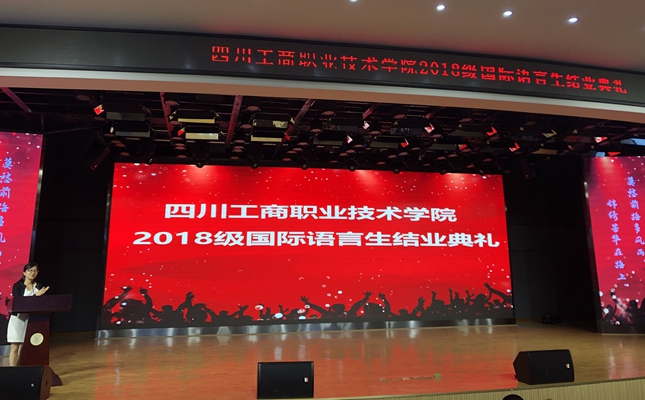 留学生代表阿里用流利的中文讲述了这一年在中国的学习和生活,表达了对学校、老师、同学的不舍之情,并对学校给予的留学机会表示感谢,并表示不会忘记在四川工商职院的朋友、老师以及所有美好的时光。