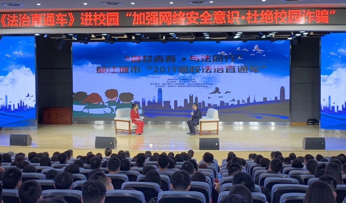为全面贯彻落实中央、省委、市委关于宪法法律学习宣传教育的安排部署,推动我校宪法法律学习宣传教育活动深入开展。针对大学生法律意识缺乏、运用法律武器维护自身权益能力欠缺等情况,校团委联合都江堰市司法局、成都电视台《法治直通车》节目策划的法治节目进高校活动于9月19日在我校多功能厅二厅顺利举行。