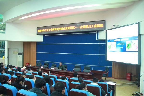 11月29日下午,根据成都市总工会教科文卫体工会的安排,成都市总工会“千场规划讲座进学校进企业进社区”讲座在我校学术报告厅举行。各部门工会会员及学生代表共400多人,共同聆听了此次讲座。讲座由党委副书记、工会主席黄天贵主持。