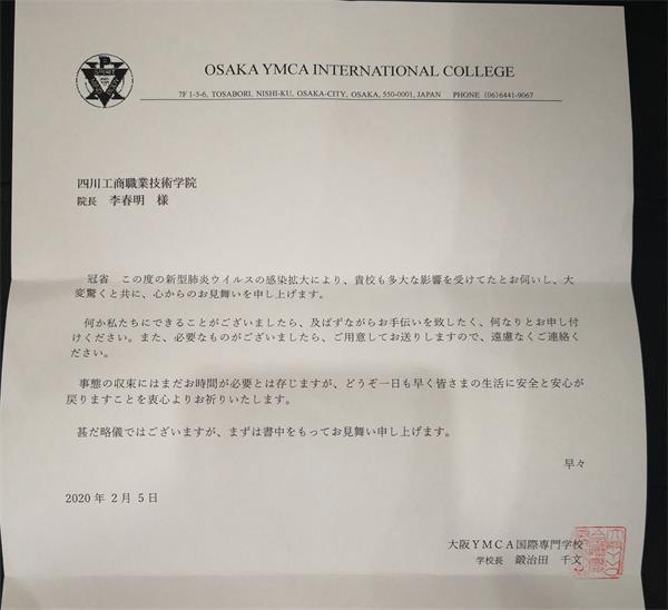 近期,新冠病毒肺炎疫情持续蔓延,形势严峻。日本大阪YMCA国际专门学校在本国防疫物资紧张的情况下,由学校相关负责人协调海关、物流等机构,以最快速度将募集到的500个口罩捐与我校。根据邮件物流信息显示,这些口罩自2020年2月5日从日本启运,带着日本友人的深情厚谊,辗转一个月来多都江堰,助力我校抗疫工作。