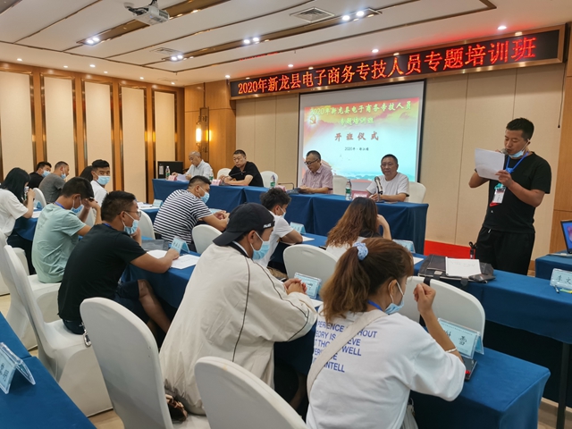 新龙县委组织部常务副部长兼县公务员局局长、县委直属机关工作委员会书记、县委老干部局局长何鉴首先对我校长期以来的支持与帮助表示衷心的感谢。并指出,电子商务已经成为区域发展的强大推动力量,特别是在疫情期间,电子商务成功的发挥了自身的优势,带动了经济的发展。希望参训学员要对此次培训引起高度重视,积极培训老师做好防疫工作;验收课堂纪律,维护课堂持续;认真学习,学以致用,全身心投入,全方位加强,为新龙县电子商务发展引领示范作用。