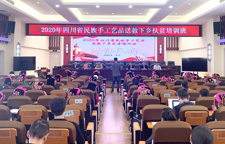 10月12日下午,由省经济和信息化厅主办,我校承办的2020年四川省民族手工艺品送教下乡扶贫培训班开班仪式在甘孜州丹巴县五里牌新区综合办公楼会议室举行。省经济和信息化厅一级调研员、宣传教育处处长廖卫民,省经济和信息化厅农产品加工处处长何开华,省经济和信息化厅轻工纺织处二级主任科员邓夏露,学校党委委员、副院长邓春生,甘孜州经济和信息化局副局长张建波,甘孜州丹巴县县委常委、组织部部长张波,甘孜州丹巴县人民政府副县长肖菲出席了本次会议。开班仪式由何开华处长主持。