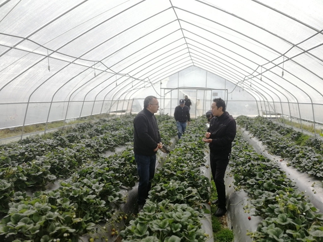 丹东镇高原草莓种植基地是我院扶贫干部重点打造的扶贫造血产业项目。基地占地160余亩,截至目前,产值达80余万元,有效推动了丹东镇经济增长,促进了群众就业,巩固了脱贫成果,奠定了乡村振兴的产业基础。在基地,邓院长向管理人员询问了解基地建设、生产、销售等情况,着重询问了基地运营管理模式和带动脱贫机制,向在基地劳动的工作人员询问了解收入情况,充分肯定了基地运营管理模式和带动脱贫机制。