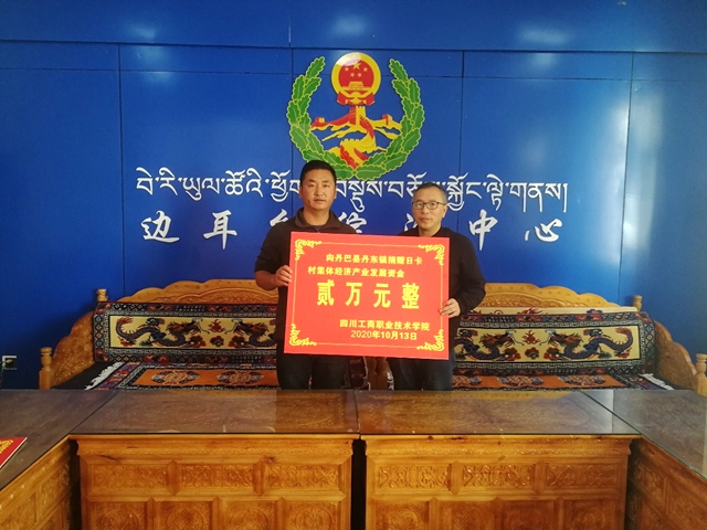 参观结束后,邓院长一行来到丹东镇政府出席了在镇政府会客室举行的捐赠仪式。邓院长代表学院向丹东镇政府捐赠了各尔沟村党建工作经费15000元,日卡村党建工作经费10000元,日卡村集体经济产业发展扶持资金20000元。这些资金将为丹东镇贫困村基层党组织阵地建设和产业发展注入生机。