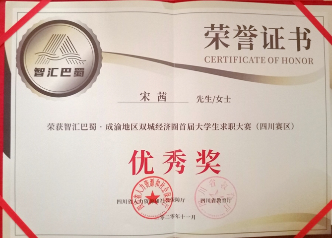 复赛分自我介绍、无领导小组讨论和才艺展示三个环节, 在自我介绍环节,给选手展示所获成就和职业规划,不得不感叹这一代新青年的无限潜力。无领导小组讨论和评委提问环节考验了选手的逻辑思维能力,语言表达能力,领导能力,组织能力,协调能力等,也考察了选手的人生观、世界观、价值观。最终我校代表宋茜同学以89.6的成绩获得小组第四,荣获“智汇巴蜀·成渝双城经济圈首届大学生求职大赛(四川赛区)优秀奖。