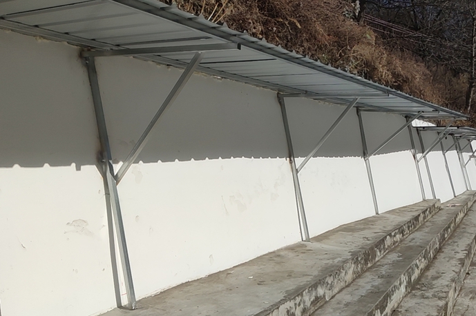 本次实施的标准化建设项目包括三部分:一是墙体风貌美化。将吉汝村800m2的活动室的院坝墙体用防水涂料以5cm的厚度涂白、抹平,为后期乡村振兴在墙体绘制嘉绒藏族民族风情图案打基础。二是加强全村村民的凝聚力,加强“眼向党看,心向党靠,人跟党走”的每月大型党课的容纳率,在户外安装了遮雨棚,让村民不用担心日晒雨淋,可以安心参加党课。三是在吉汝村活动室内外使用亚克力板绘制了“不忘初心、牢记使命”“党章制度”“中国共产党24字方针”等墙体宣传图案。同时安装了4个防雨宣传栏,并张贴了吉汝村自2018年以来学校、上级部门等领导到吉汝村开展的工作照片,以及在各级党委大力帮扶下发生的巨大变化。
