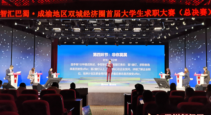 智汇巴蜀·成渝地区双城经济圈首届大学生求职大赛以“筑梦巴蜀、赢在职场”为主题,分高校初赛、川渝两地决赛、川渝总决赛三个阶段举行。最终晋级川渝两地决赛的100名选手经过激烈角逐,各选出5名选手进入到川渝总决赛。获奖选手有机会获得现场企业代表提供的岗位offer,从而直接与用人单位签订劳动合同进入职场生涯。