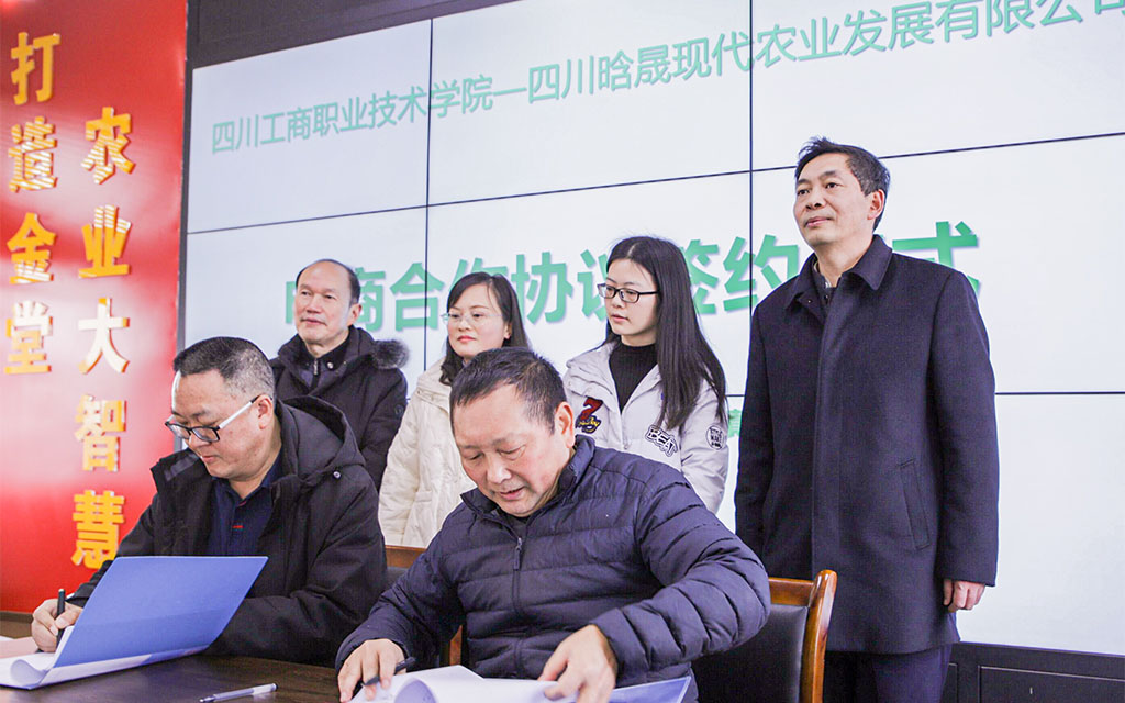 1月25日,我校与四川晗晟现代农业有限公司签订电商合作协议,我校党委书记管永林,都江堰电子商务学院院长梁正席,四川晗晟农业发展有限公司总经理张泽罗,金堂县赵家镇党委委员、副镇长杨臻,金堂县赵家镇农业综合服务中心负责人王治平出席签订仪式。