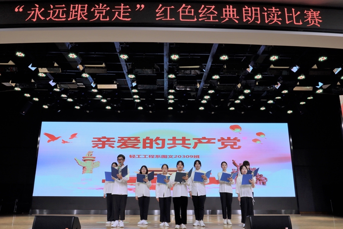 本次比赛以系为单位组队参赛,各队在赛前精心准备,诵读作品内容丰富,形式多样,比赛作品主要取材自建党、建军、建国大背景下的经典诗歌、革命散文、红色家书等,作品内容讴歌了奋斗精神、奉献精神、时代精神,抒发了爱党、爱国、爱社会主义的情感。