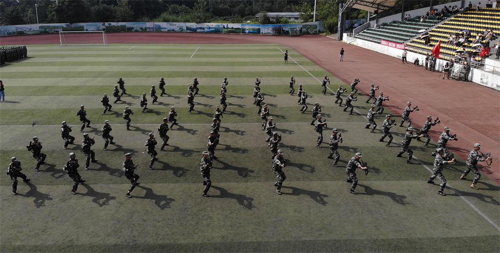 课目表演部分气势恢弘,异彩纷呈。在战术表演课目《渴望光荣》中,同学们卧倒滑行、匍匐前进、持枪行走,整齐划一的坚定步伐,灵活变换的队形阵列,精彩的营救行动,尽展特战队员的敏捷身手和英勇刚毅的军人气质,用过硬的战术素养展现踏实稳健的训练成果。女子匕首操《精忠报国》,她们手握利刃钢刀,肩扛使命担当,钢柔并济之间,用精湛的技能、过硬的本领和刚毅的气质感染了现场师生。三声三相《男儿当自强》,气势如虹、不动如山、动若脱兔,用青春向山大告白,用龙虎生威的气势彰显我校大学新生的精神风貌。擒敌拳《中国功夫》同学们斗志昂扬、势如霹雳、“杀”声嘹亮、威震四方。刺杀操,同学们干净利落的动作和勇往直前的士气成为一道独特风景,热血男儿志,巍巍工商情;动静之间,环环相扣,万无一失;行阵之中,气吞云海,军威赫赫。手语操《中国人》同学们踏着青春的节拍,朝气蓬勃,意气风发,用双手舞出“庆祝中国共产党成立100周年,1921-2021”和“maya86com 、明德强技,行健精艺”,向党的百年华诞献礼,铭记校训,为学校送上美好祝福。