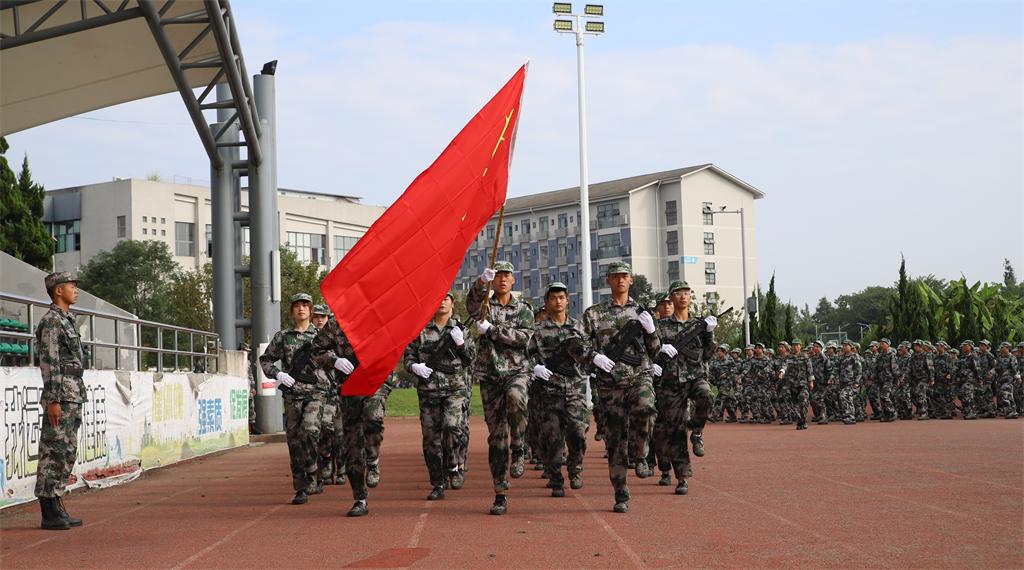 我校历来重视国防教育工作,积极引导在校大学生将爱国之心、强国之志转化为报国之行,奉献国防的光荣传统,传承着忠诚担当、爱党爱国的红色基因。2021年学生军训紧紧围绕立德树人根本任务和强军目标根本要求,创新训练形式,科学系统谋划,严密组织实施、按纲施训,开展了紧急疏散逃生演练、应急救护、紧急集合等项目,不断提高学生军训的质量和效果。坚持育人导向,发挥育人实效,落实以学生为本的理念, 将新生入学教育与学生军训国防教育有机结合,在军训期间开展理想信念教育、校史校情教育、育人特色教育、行为规范教育、环境适应教育;增进新生爱党爱国爱校情怀,号召广大新生把爱国精神转化为实际行动,坚定理想信念,充分发挥学生军训综合育人功能,促进我校“三全育人”工作全面向前发展。
