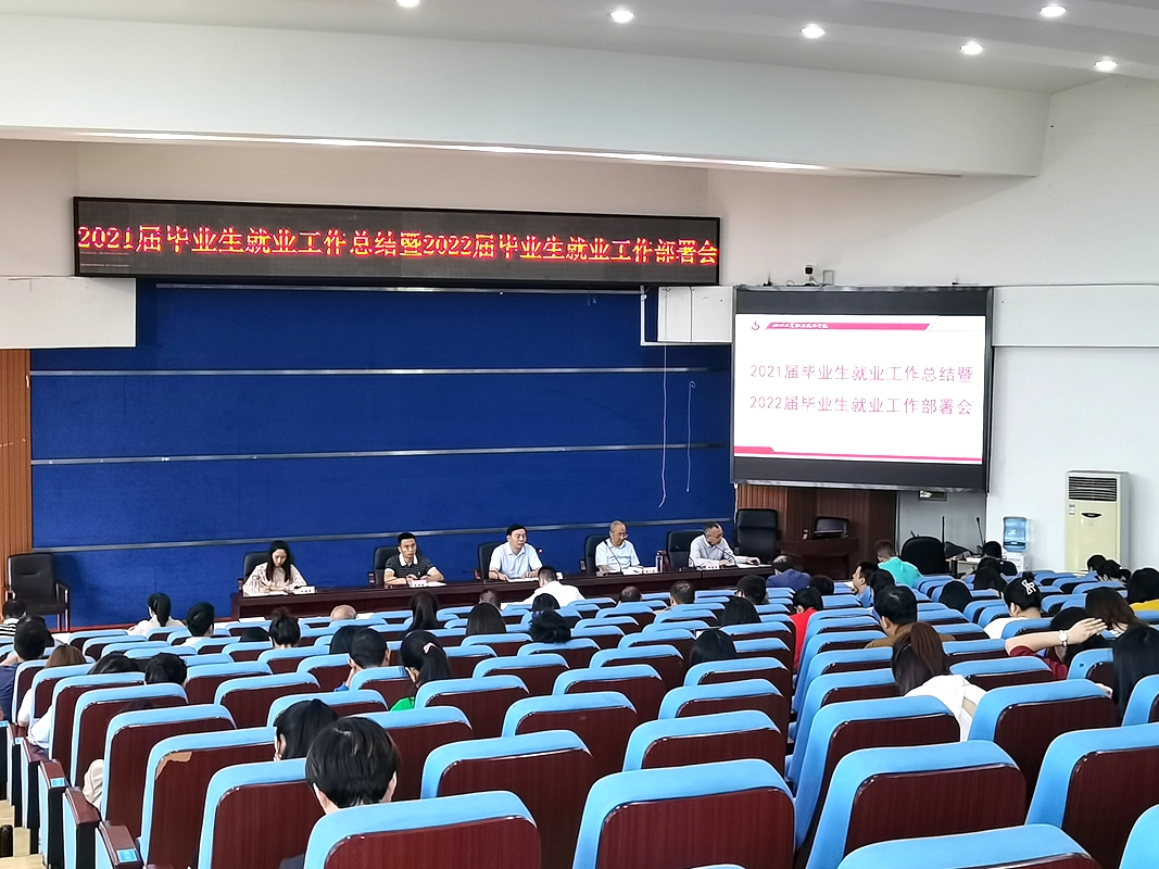 为深入研判我校毕业生就业形势,做到早谋划、早部署、早启动2022届毕业生就业工作,9月15日下午,学校在学术报告厅召开了2021届毕业生就业工作总结暨2022届毕业生就业工作部署会,校党委书记管永林,党委副书记黄天贵,党委委员、副院长王开淮、邓春生,党委委员、纪委书记向晓岚出席本次会议。党政办、学生处、教务处、对外交流中心、招生就业处等相关部门负责人及各二级院系的主任、书记和2021届、2022届毕业班辅导员参加了会议。会议由副院长邓春生主持。