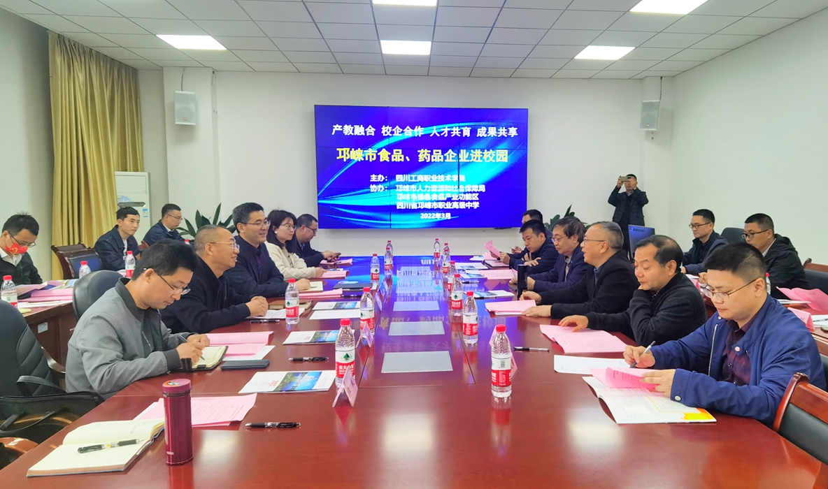 3月23日,邛崃市绿色食品产业功能区领导及功能区13家企业代表与邛崃市职业教育中心一行到校交流产教融合、校企合作、校园招聘等就业相关事宜。学校党委副书记、校长李春明,党委委员、副校长邓春生,轻工工程学院、智能制造与信息工程学院、对外www.maya805.com 处、招生就业处等单位负责人参加活动。
