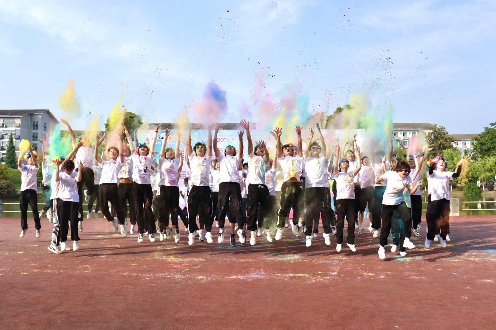 第十届学生心理素质拓展训练营——趣味彩虹跑活动在校园的各个区域设置了红、黄、绿、蓝、橙5个必闯关卡和2个隐藏关卡,6支学院代表队需要重重闯关,完成各关卡内的团体活动,通过喷洒彩虹粉末享受乐趣、发挥创意、赢得奖励。