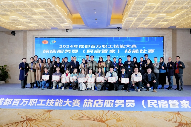 11月28日至29日,由成都市总工会、成都市人力资源和社会保障局、都江堰市人民政府主办,我校协办,都江堰市总工会、市人力资源和社会保障局承办的“2024年成都百万职工技能大赛旅店服务员(民宿管家)技能大赛”在都江堰市圆满举行。来自成都市各民宿的80余名民宿管家同台竞技,在切磋中共同提升专业技能与服务水平。