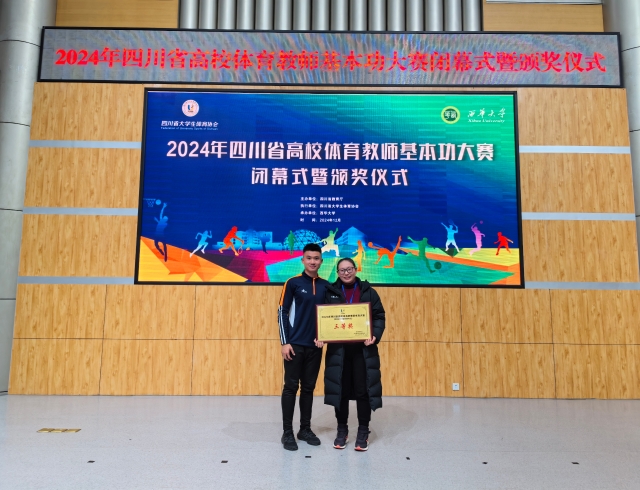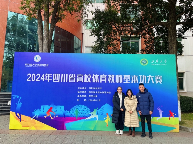 12月11日至14日,由四川省教育厅主办的四川省高校体育教师基本功大赛在西华大学圆满举行。我校代表队在大赛中表现出色,谢家琦获个人赛一等奖殊荣,邓雁方获评优秀指导教师,我校获高职高专类体育实践组团队三等奖。