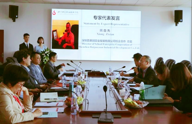 在当天下午举行的连锁经营管理专业指导委员会成立大会上,特别邀请了中国教育部现代学徒制入库专家、广东省教育厅教学诊断与改进专家委员会专家、百果园校企合作部总经理熊自先和苏宁、永辉、京东和首旅如家等企业的20余位来自行业的企业专家和代表参加了此次会议。我校副院长岳文喜、校企合作处处长汤淮江出席了会议。