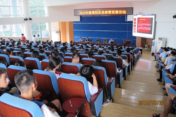 深入贯彻落实关于加强禁毒工作的重要指示精神,在第三十二个国际禁毒日到来之际,广泛宣传禁毒知识,6月20日下午,由保卫处和聚源镇政府、派出所主办的“2019年禁毒知识讲座暨知识竞赛活动”在学术报告厅举行,各系、部主管学生工作的负责人、保卫处全体成员以及2018级320名学生代表参加了此次活动。