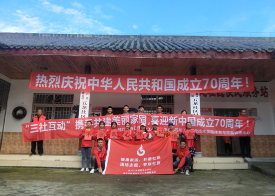 机电工程系志愿服务队与都江堰市聚源镇三坝村社区结对开展了社区街道垃圾清理、帮助社区制作迎接国庆的布置物件的志愿服务活动。