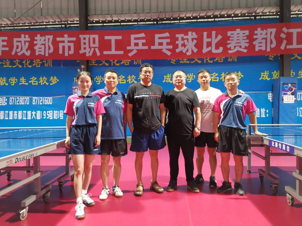 7月31日,“爱成都·迎大运”都江堰市首届社区运动节暨第七届全民健身运动会乒乓球比赛在都江堰市体育中心成功举办,来自都江堰政协、公安局等9个代表队参加了此次比赛,我校组成了工会专职副主席杨敬东为领队,汤淮江为教练,李辉,辜良军,杜雯为队员的团队参加了团体项目的比赛并获得冠军。
