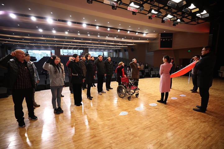 两位离退休老同志退休不褪色、离岗不离心,时刻关心、关注国家和学校发展的情怀和精神深深感染了在场的所有师生,现场的掌声经久不息。最后,在黄保仁同志的领誓,学工党支部全体党员重温了入党誓词。