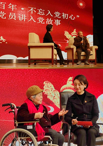 主题党日活动由党支部副书记杨婧主持。活动开始前学工党支部副书记梁胜同志代表支部对两位平均年龄90多岁的老同志的到来表示了热烈的欢迎和感谢,并对支部直属各部门“四史”教育学习各项工作任务进行了安排和部署,要求各部门要以深入开展“四史”教育学习契机,自觉与学校发展规划、年度工作任务,部门工作职责、目标任务及党员职工自身生活、工作和学习紧密结合起来,筑牢思想根基,不断增强责任意识、服务意识、大局意识,立足岗位、再立新功、凝心聚力推动学校高质量高水平发展。