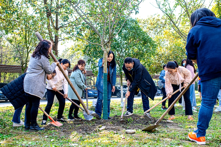 通过此次活动,加深了师生们对校园的热爱。参与活动的老师表示工商校园是自己工作的地方,种下每一棵树,希望它们为学生送上一道春天的美景,撑起一片夏日的阴凉。学生们则表示这是自己学习生活的热土,种下的每一棵树将见证并陪伴自己的成长。最后信息工程系师生在种植的海棠树下合影留念,用相机记住这美丽的时刻。