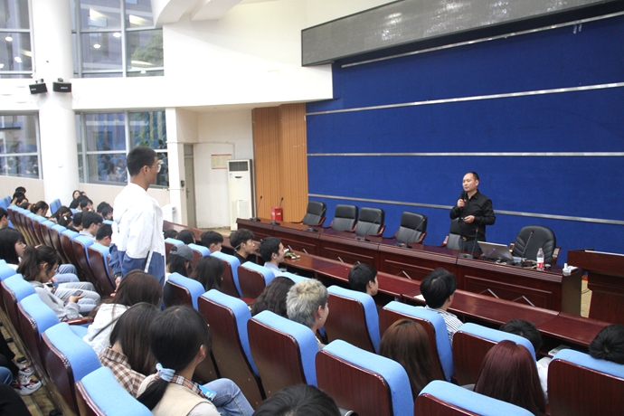 为激发大学生创业意识,宣传创业理念,培养创新创业精神,4月27日,艾特生活董事长兼CEO刘原先先生受邀来到我校,在学术报告厅为信息工程系、电商学院大一大二同学们开展了一场主题为“让大脑独立思考,绝不随波逐流”的创新创业讲座。