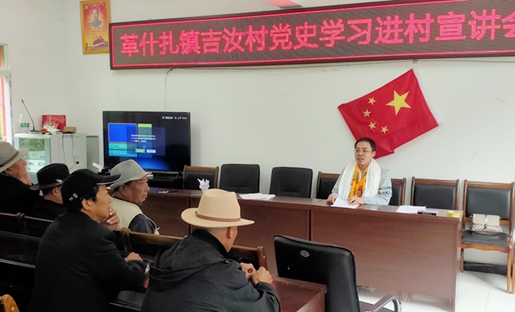 我校派驻丹巴县革什扎镇吉汝村的驻村干部隋明同志受革什扎镇党委领导、吉汝村村支两委、驻村工作队的委托,于6月23日在吉汝村党员活动室为全体党员、村支两委干部、村民代表上了一堂意义非凡的一堂党课——这是隋明同志在任期结束前为吉汝村村民最后一次授课。
