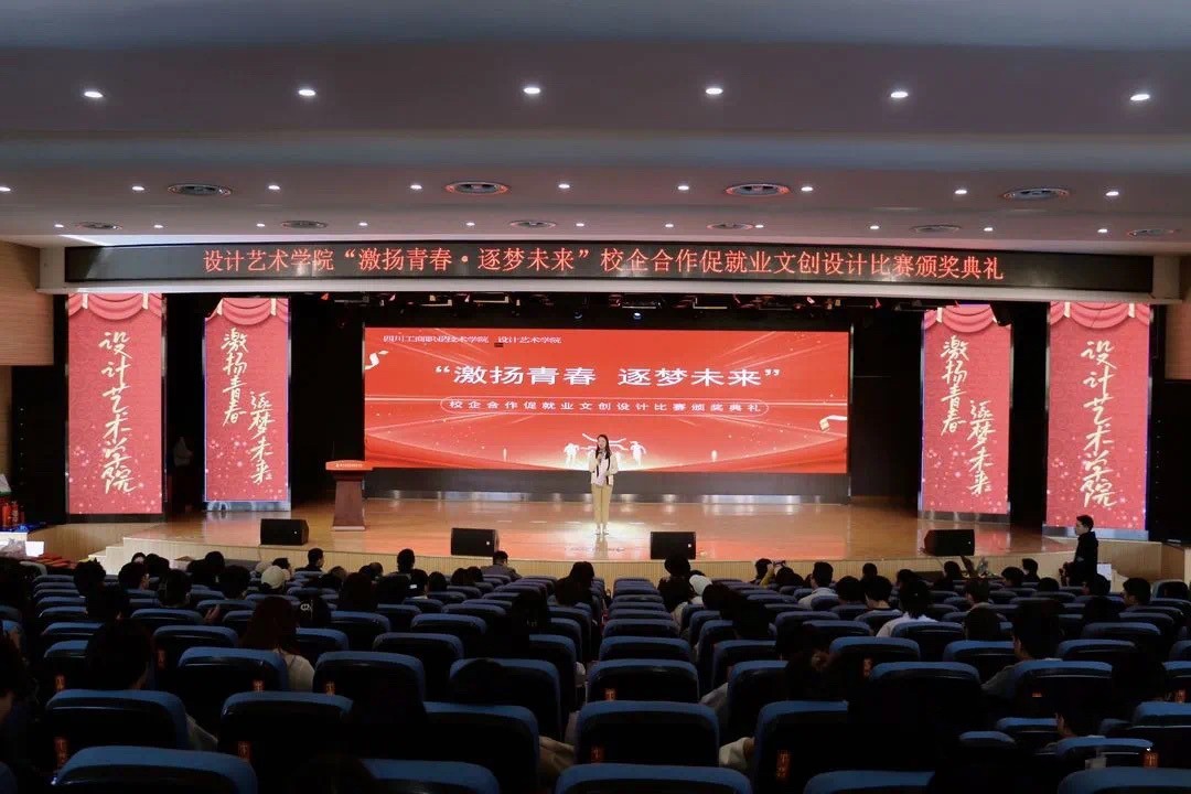 3月15日下午,我校设计艺术学院“激扬青春,逐梦未来”校企合作促就业文创设计比赛颁奖典礼在多功能二厅举行。学校党委委员、纪委书记向晓岚,蜀工文化馆董事长刘新乐出席颁奖典礼并为获奖者颁奖。设计艺术学院党总支书记黄志刚教授代表该院在颁奖礼上致辞。