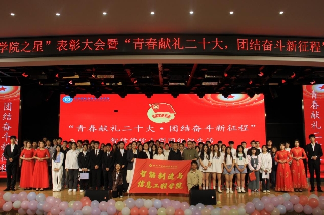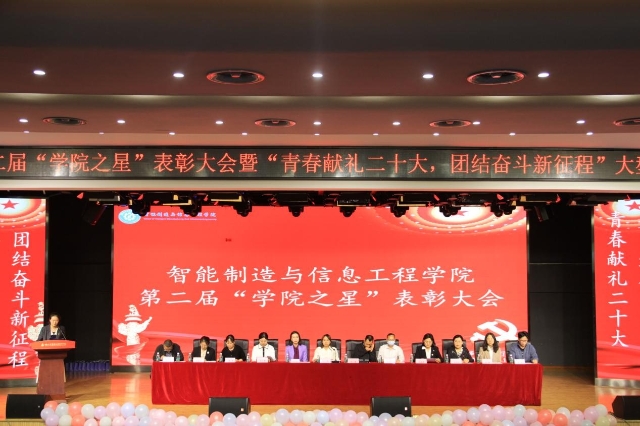 为深入学习宣传贯彻党的二十大精神,弘扬“五四”精神,加强新时代青年爱国主义教育,智能制造与信息工程学院于5月11日在多功能厅二厅举办第二届“学院之星”表彰大会暨“青春献礼二十大,团结奋斗新征程”大型团组织活动。