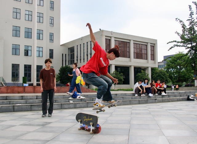 花车在厚德广场停下,第二场社团表演也随之展开。轮滑协会的《花式过桩》动作优雅流畅,配合轻快的音乐,让人眼前一亮;滑板爱好者的《街式动作》干净利索,高难度的动作和帅气的姿势让人惊叹;篮球协会的《花式运球》人球合一,帅酷表演燃翻全场。