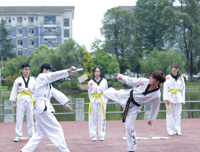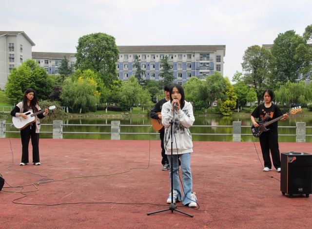 花车途经素质拓展馆后驶向青春文化广场,这是社团节目展示的第一站。吉他协会的吉他弹唱给观众们带来清风拂面的感觉;舞蹈协会的舞蹈《Candy》跳出了少男少女们的朝气蓬勃;跆拳道协会的《基本功展示》彰显出青年学子卧如弓、行如风、坐如钟的浩然正气;军营联盟协会的《刺杀操》尽显军中男儿的刚健雄风;音乐协会的合唱《最美的太阳》唱出了追梦人的勇敢。