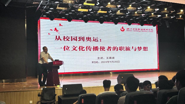 为传承弘扬我校优良学风,充分发挥校友榜样示范作用,9月20日,我校2025届第一期校友大讲堂在多功能二厅开讲,邀请1996届硅酸盐专业校友、重庆沁源文化传媒有限公司总经理王显波主讲,讲座主题为“从校园到奥运:一位传播使者的职旅与梦想”。全校400余名师生到场聆听讲座。
