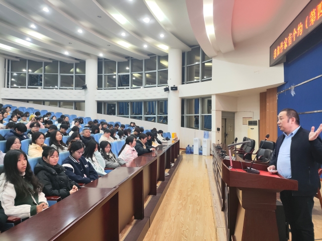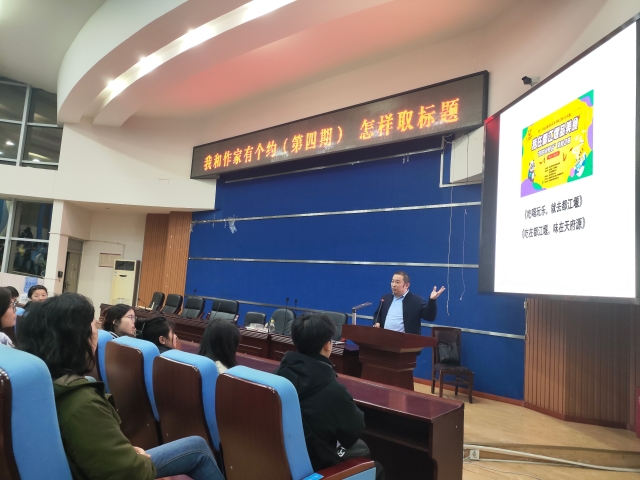 本次活动由党委宣传部和校团委主办,学生社团管理中心和轻风文学社承办。活动邀请到我校校歌词作者、中国作家协会会员、四川省作协全委会委员、成都市作协副主席、都江堰市融媒体中心副主任王国平老师作“怎样取标题”专题讲座。