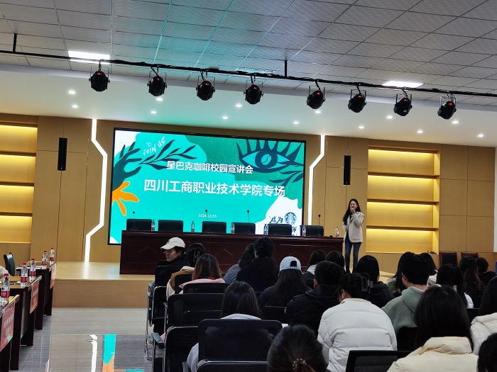 成都星巴克、成都厚朴星文化传媒等企业代表逐一上台,通过PPT展示、视频播放等形式,生动详细地介绍了公司企业文化、发展历程、业务范围以及本次招聘的岗位信息、任职要求和福利待遇等。企业代表们不仅分享了公司为员工提供的成长空间和晋升机会,还就学生们关心的职业发展路径、工作环境等问题进行了互动解答,现场气氛活跃而热烈。