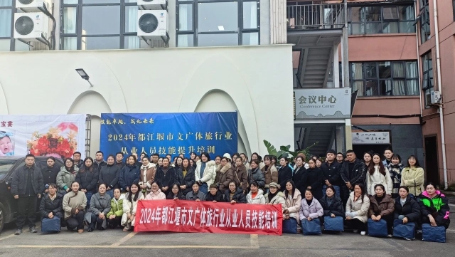 12月16日至20日,2024年都江堰市文广体旅行业从业人员技能提升培训在都江堰市圆满举行。本次“技能卓越 成就未来”主题培训由都江堰市文广体旅局主办,旨在提升文广体旅行业一线从业人员综合素质与服务水平,都江堰众多旅行社、酒店、民宿的一线从业者参加培训。国际旅游与体育学院鼎立支持,派出5位具有丰富的教学与行业经验的优秀教师,为参培人员讲授了多场专题讲座。