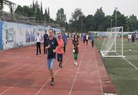 大家首先在学院运动场围绕操场慢跑1圈热身,随后出发前往IT大道天府绿道(聚源段3公里)上开展全体竞走比赛,并参观沿途新农村,体验新风貌。